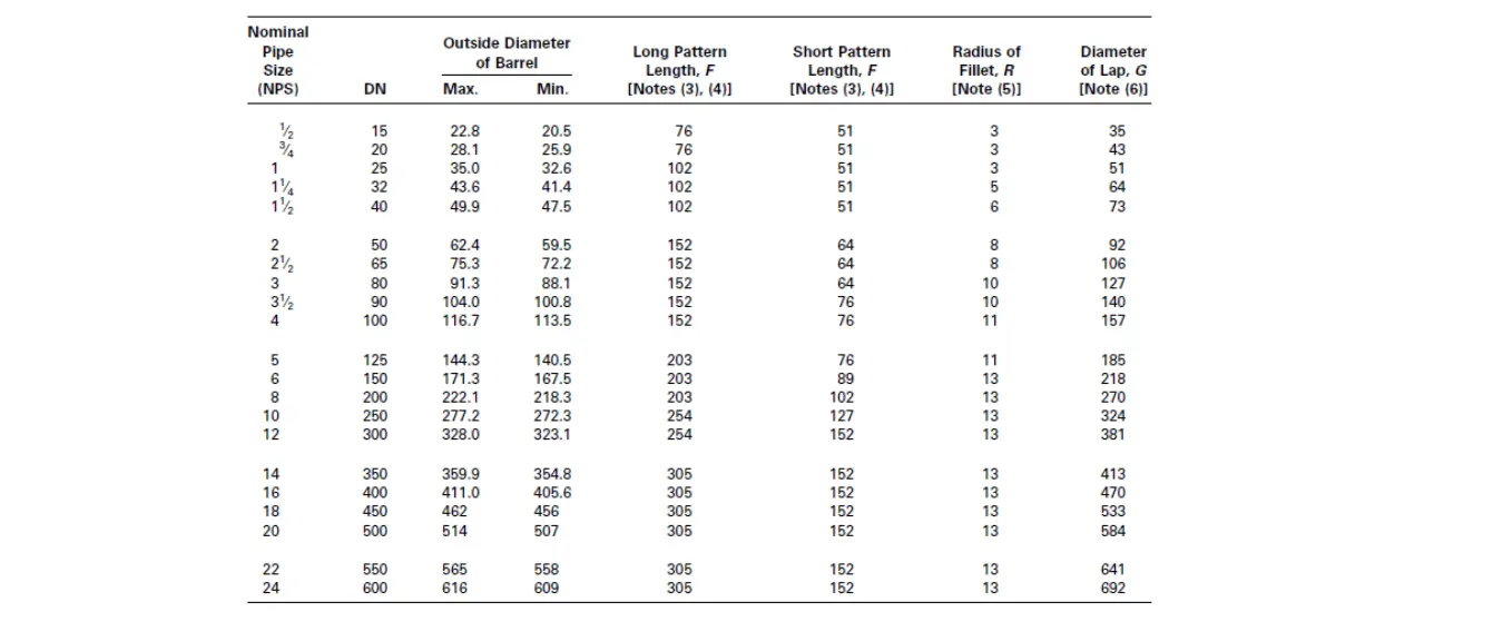 ASME/ANSI B16.28ASME/ANSI B16.9