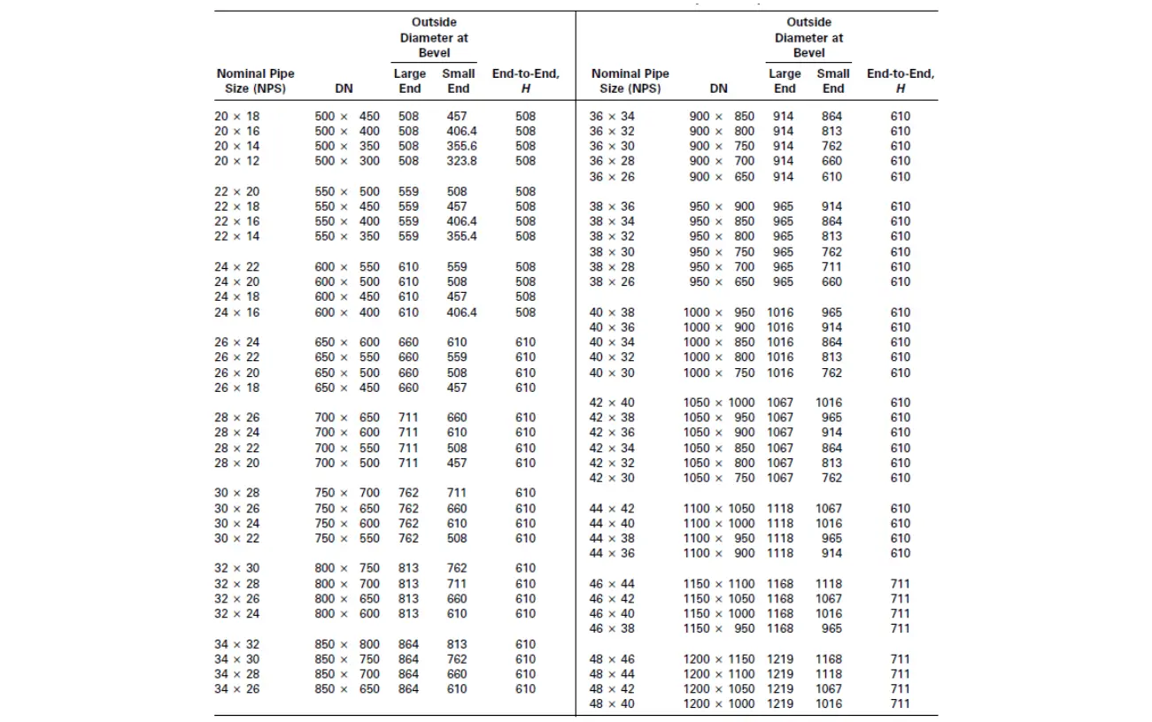 Seamless: 1/2” to 20” (DN15 ~DN500)